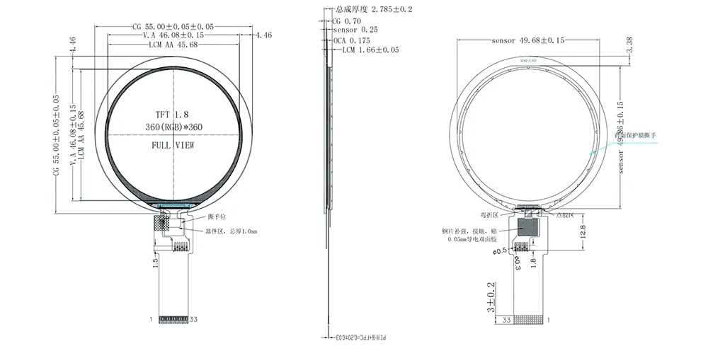 | 外形サイズ | 55(H)*55(V)*2.785(T) | タッチインターフェース | IIC |