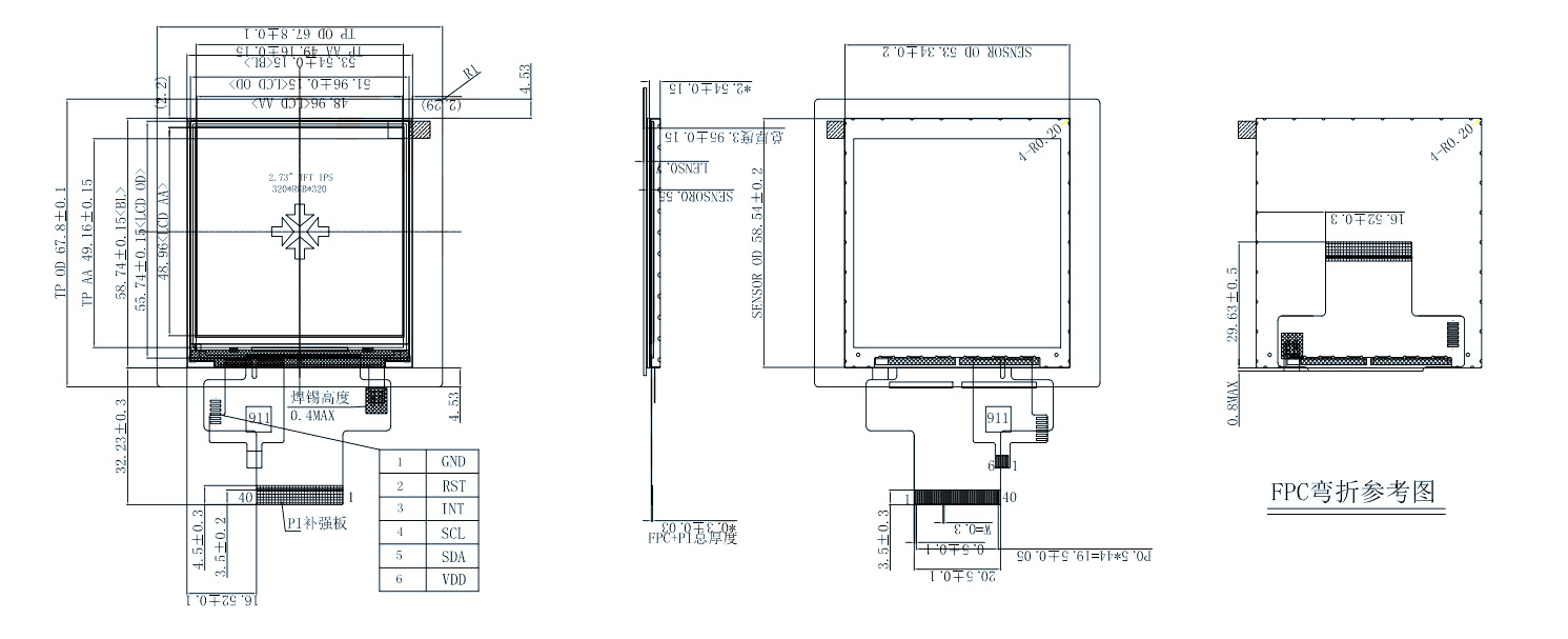 マルチタッチ画面付き2.73インチの正方形画面。ディスプレイとタッチスクリーンは統合されており、デザインに便利です。標準40pin。医療機器、血液酸素メーター、ハンドヘルド試験機器、車両に取り付けられた機器、その他の製品に適用できます。当社は、顧客の要件に応じてカスタマイズを受け入れることができます。