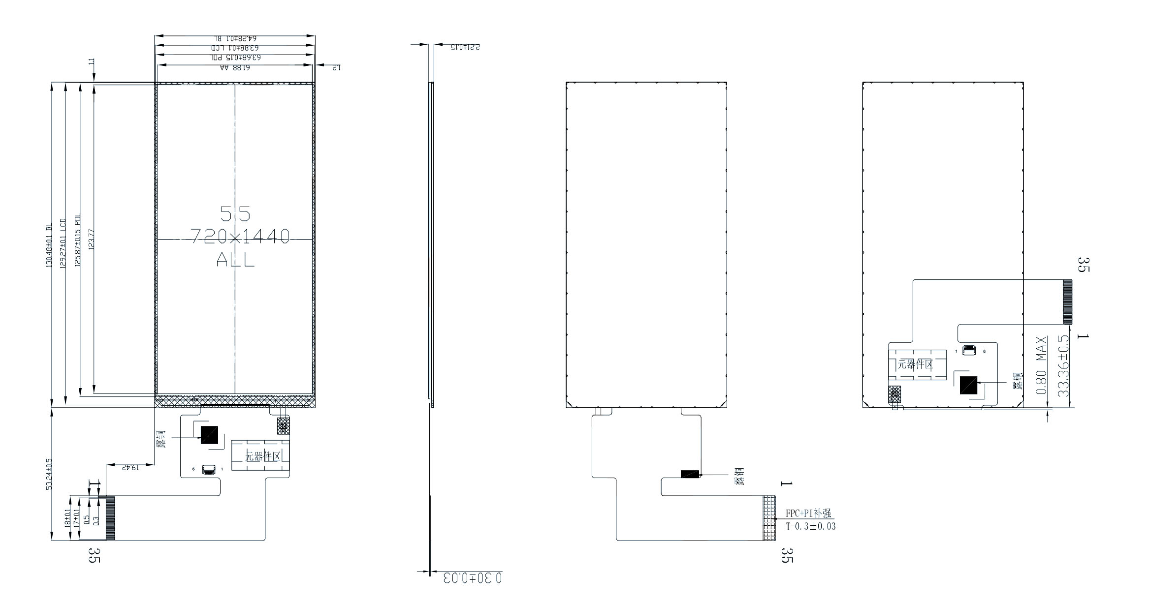 | 寸法の概要 | 64.28(幅)*130.48(高さ)*2.21(厚さ) | バックライトLED | 14個 |