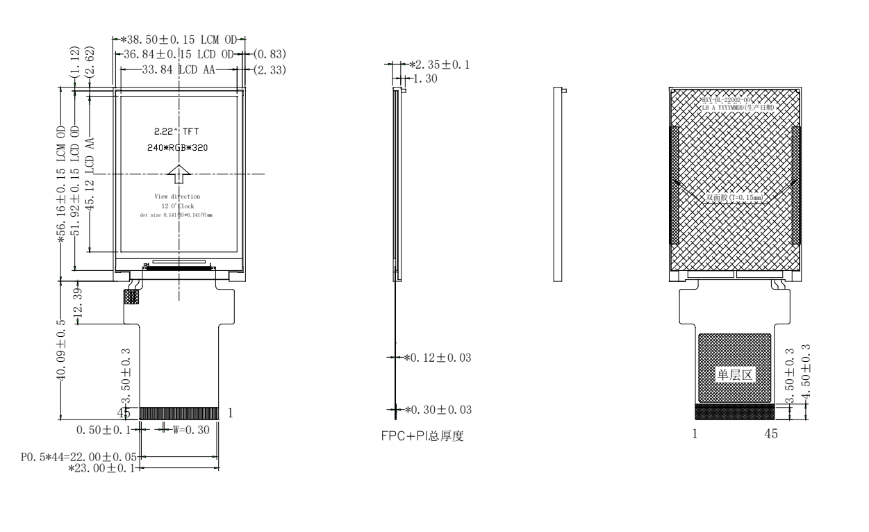 Shenzhen Honjia Technology は、継続的な供給を確保するために安全な在庫を維持し、2.2 インチ LCD スクリーンを長期間供給してきました。この 2.2 インチ LCD ディスプレイは、解像度 240*320 で、成熟した ST7789 IC を使用し、高い信頼性を提供し、3/4 線式 SPI インターフェイス、8 ビット/16 ビット MCU インターフェイス、16/18/24 ビット RGB インターフェイスを含む SPI/MCU/RGB インターフェイスをサポートしています。 2.2 インチ TFT スクリーンは 2.4 インチと 2.8 インチの LCD スクリーンの間に位置し、小型サイズを必要とする顧客に適しており、マイクロコントローラーもサポートしています。多くのお客様にご愛顧頂いております。また、柔軟なケーブル インターフェイス、バックライトの輝度、タッチ スクリーンなどのカスタマイズされたサービスも提供します。