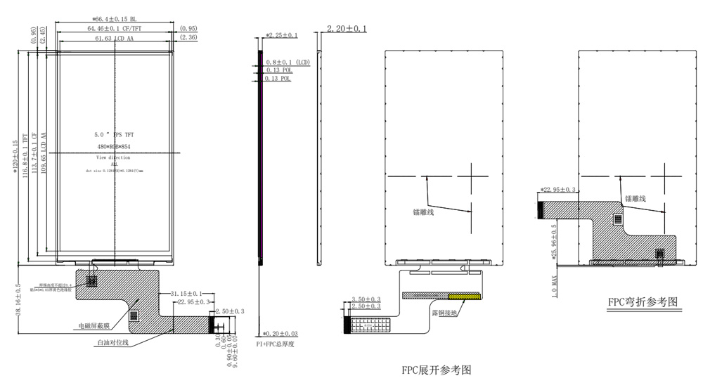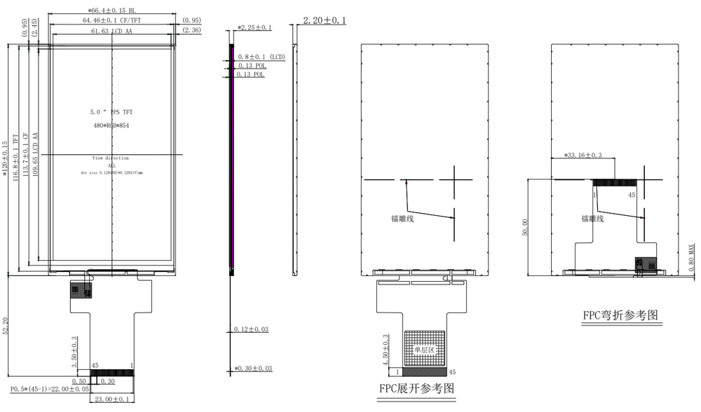 頻繁にハードウェアを設計するエンジニアにとって、800*480 解像度と RGB インターフェイスを備えた 5 インチの横長画面は非常に一般的です。今日は、深セン宏佳科技のエンジニアマネージャー、黄氏が紹介します。5インチの縦型スクリーン解像度480*854。この画面は狭いベゼルと 16:9 のアスペクト比を備えており、狭いベゼルを必要とするマシンに適しています。これにより、クライアントのマシンの美観が向上し、ベゼルが広くなりすぎることがなくなります。 RGB および MIPI インターフェイスをサポートし、成熟した ILI9806E IC を利用し、優れた静電気防止および干渉防止性能を提供し、産業機器、軍事機器、ドローンなどの要求の厳しいアプリケーションでの使用に適しています。構造図を以下に示します。カスタマイズもサポートされています。