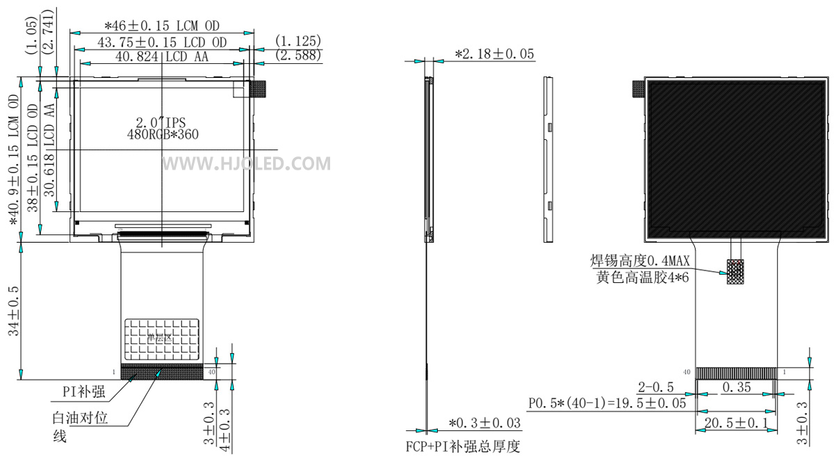 3. 2.0 インチ HD TFT ディスプレイ: これは、480 × 360 ピクセルの高解像度解像度を備えた横長のディスプレイです。 ST7701S ドライバー IC と RGB インターフェイスを利用します。メインボードを設計するときは、CPU にディスプレイを効果的に駆動する能力が不足するシナリオを防ぐために、ホスト CPU が高解像度ディスプレイと RGB インターフェイスをサポートしていることを確認することが重要です。 480 × 360 の横長構成のアスペクト比は 4:3 です。したがって、表示された画像が 90 度回転しないように、ソフトウェアの初期化中に (通常は 0x36 コマンドの MV/MX/MY ビットを介して) スキャン方向を正しく設定する必要があります。